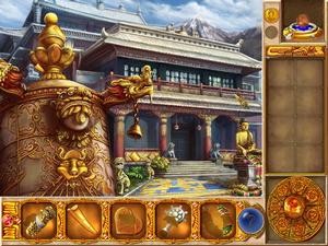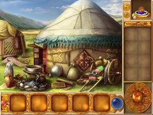 Enigmes & Objets Cachés : Le Grimoire Magique n'est pas à proprement parler un jeu d'aventure pointer-cliquer, puisqu'ici il s'agit surtout de découvrir les objets cachés dans le décor, afin de trouver les indices qui vous mèneront à sauver le professeur de Magie de Katrina, victime de la malédiction du loup-garou. Le titre prend ainsi des airs de jeu policier (façon Mystery Cases Files) et naturellement, cela parle beaucoup dans la progression, et les décors rencontrés sont un capharnaüm assuré. Dire que les lieux traversés sont propres et rangés serait en effet mentir, mais il va falloir fouiller partout pour dégoter des objets qui permettront d'obtenir des informations sur la suite des évènements. Si cela peut sembler un peu austère, le scénario est plutôt bien construit. Cependant, aucun dialogue n'est présent, mais des lignes et des lignes de textes défilent sur les écrans, écrans qui demeurent fixes au demeurant. Néanmoins, un effort a été fait, et le graphisme est en plein écran.