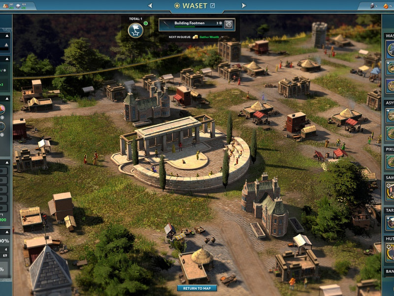 Chaque ville dispose d'un certain nombre d'installations grâce auxquelles la ville consomme les produits désignés. Le mélange d'herbes augmente la santé nationale de quinze points pour un total de dix tours. Le pain a le même effet, mais apporte également un bonus de dix points en nourriture. Ces installations offrent donc des solutions, car on peut compenser un manque de nourriture dû au manque d'exploitations agricoles en faisant du pain dans les boulangeries. Un autre exemple est la loi qui apporte davantage de connaissances et de sécurité dans la ville. Fabriquer des matériaux et des biens est donc crucial pour progresser. Non seulement pour satisfaire tout le monde ou pour améliorer l'apport des bâtiments, mais aussi pour pouvoir payer les améliorations et les nouveaux bâtiments. On ne peut pas construire une usine moderne sans dix blocs d’acier et vingt blocs de béton. D'autres bâtiments nécessitent du verre, etc. Au fur et à mesure que vous progressez dans les époques, de nouvelles ressources apparaissent sur la carte. Au début, une ferme d’élevage ne pouvait produire que de la nourriture, mais elle a ensuite été élargie pour inclure la production de suif. Vous devez tout surveiller de près si vous voulez réussir. Pour rendre les choses encore plus compliquées, des experts arrivent en ville. Ces personnes ne sont pas visibles, mais vous pouvez les faire travailler dans une rubrique. Ils veillent à ce qu'une ferme produise juste un peu plus de nourriture ou qu'une tour de guet offre plus de sécurité. Ce ne sont pas les seuls visiteurs, car vous débloquez également les Parangons. Ce sont des personnages historiques célèbres comme Sun Tzu qui donnent des bonus à votre nation. Du moins si vous les utilisez comme conseiller. Cela peut concerner les domaines culturel et militaire, mais aussi la politique étrangère. Vous pouvez également les mettre à contribution pour créer des chefs-d’œuvre spéciaux. Ce sont des livres, tableaux et autres œuvres d’art qui procurent du Prestige et que vous pouvez effectivement exposer dans un musée.